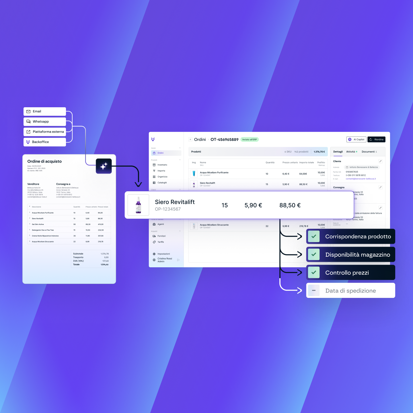 - Valida automaticamente prezzi, stock e date di consegna